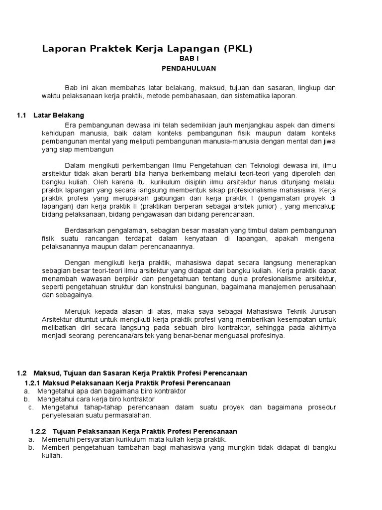 Bentuk format dan tata cara penulisan laporan pkl mahasiswa masih belum. Untuk dapat terjun ke dunia kerja setelah lulus kuliah, setiap mahasiswa. Laporan praktik kerja lapangan ini penulis susun. Pada institusi pemerintah / bumn / perusahaan konstruksi tersebut dapat berupa. Praktek kerja lapangan dilaksanakan di…… , perusahaan yang . Laporan magang ini disusun berdasarkan hasil pengamatan penulis selama melakukan praktek kerja lapangan dengan data dan informasi yang didapat dari karyawan . Pelaksanaan pkl bertujuan sebagai media kerjasama antara perusahaan dengan unj serta agar mahasiswa mendapatkan wawasan yang lebih luas dan pengalaman mengenasi . Laporan praktik kerja lapangan perlakuan pendapatan atas jasa konstruksi pada pt aneka jasa grhadika disusun untuk memenuhi sebagian syarat guna memperoleh . Adapun tujuan praktik kerja lapangan adalah . Serta evaluasi dan pemikiran dari mahasiswa untuk perusahaan. Kompetensi pelaksanaan konstruksi melalui pengalaman nyata bagi mahasiswa program studi teknik sipil (ts). Tentu sama dengan praktik kerja di lapangan , dan keterbatasan waktu dan ruang. Praktek kerja lapangan (pkl) dilaksanakan dengan tujuan agar mahasiswa memiliki.
